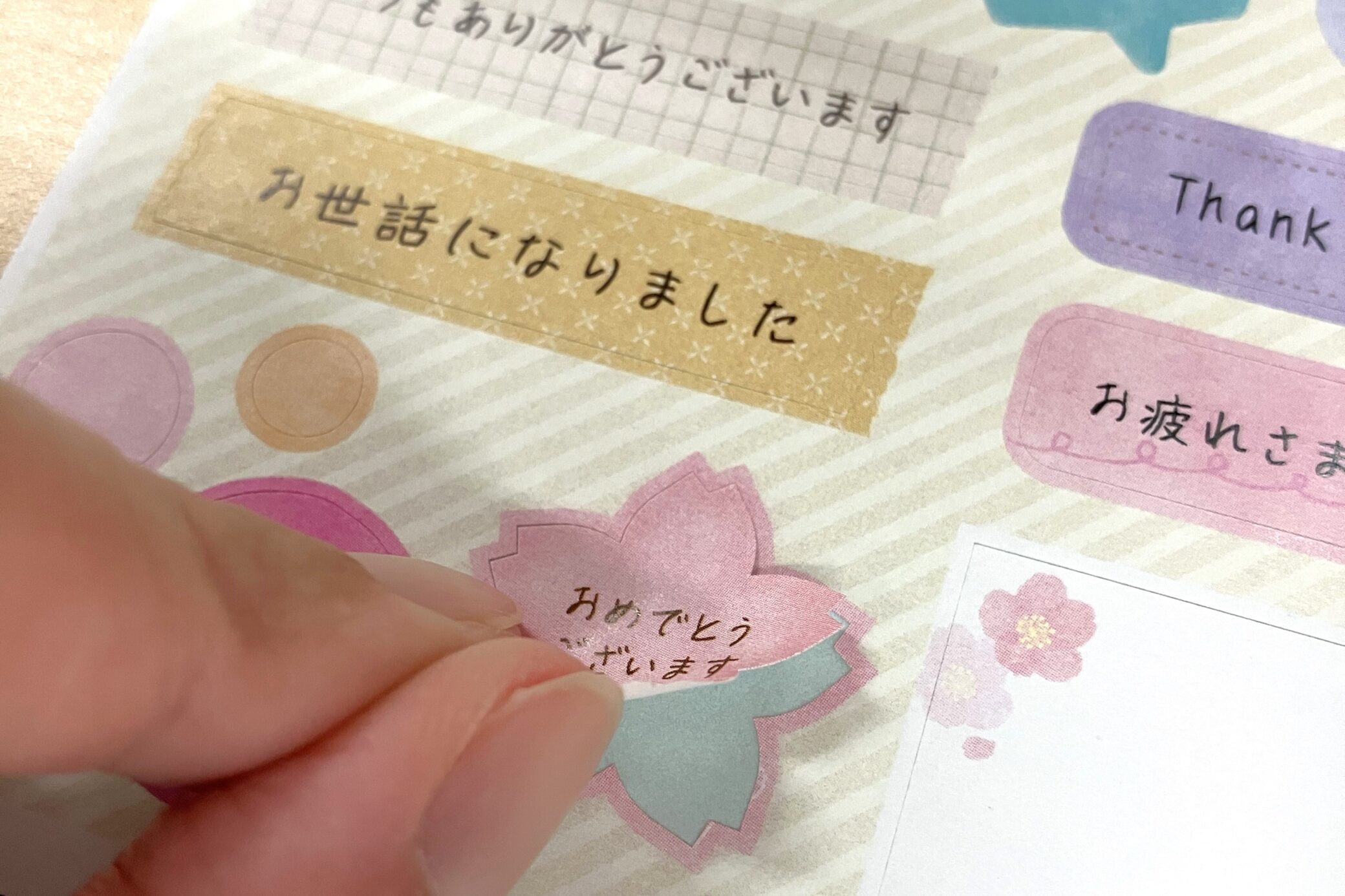 台紙(剥離紙)を残し、シール部分にだけサイズ通りの切れ込みを入れる仕上げ方法です。
