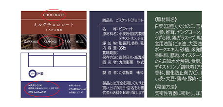 ベタ面積が多い中の白文字はツブレが発生しやすい。スミ文字等への変更を検討する。