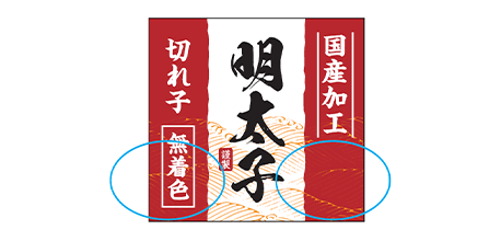 特色でも、模様の見当がある柄の上の白文字は見当ズレが発生する。