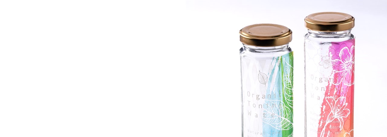 透明シールは、印刷が透ける素材なので、容器にそのまま印刷したように見せたりすることができます。
