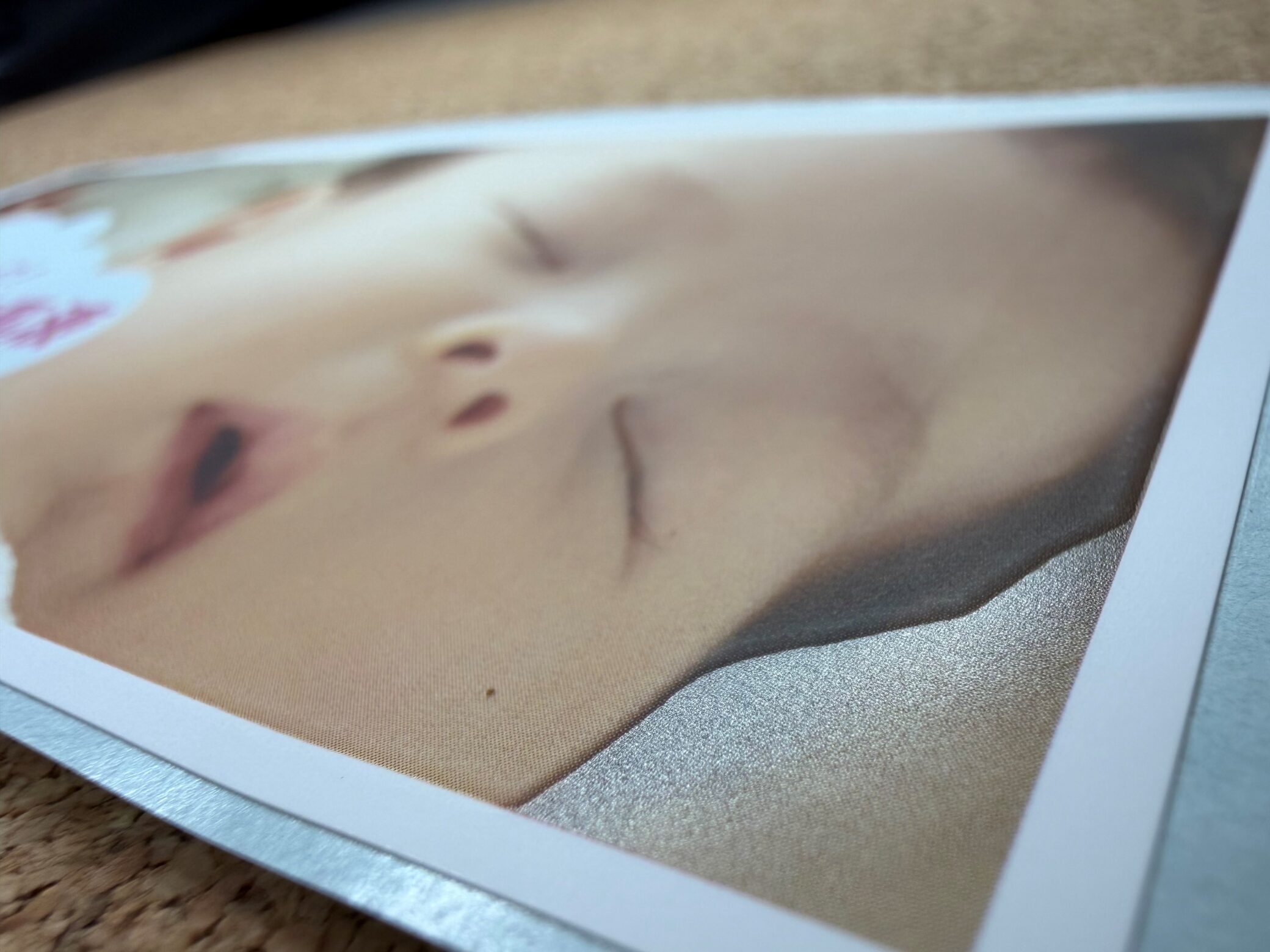 画像は、赤ちゃんのきめ細やかなやわらかい肌の質感を表すために、表面にシルク印刷加工を施しています。マットな質感の原紙をより肌感に近寄らせた表現で、「なんだか何度も触りたくなる」という肌心地です。